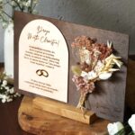 - Materiał – sklejka brzozowa 3mm, plexi złote lustrzane, suszone kwiaty